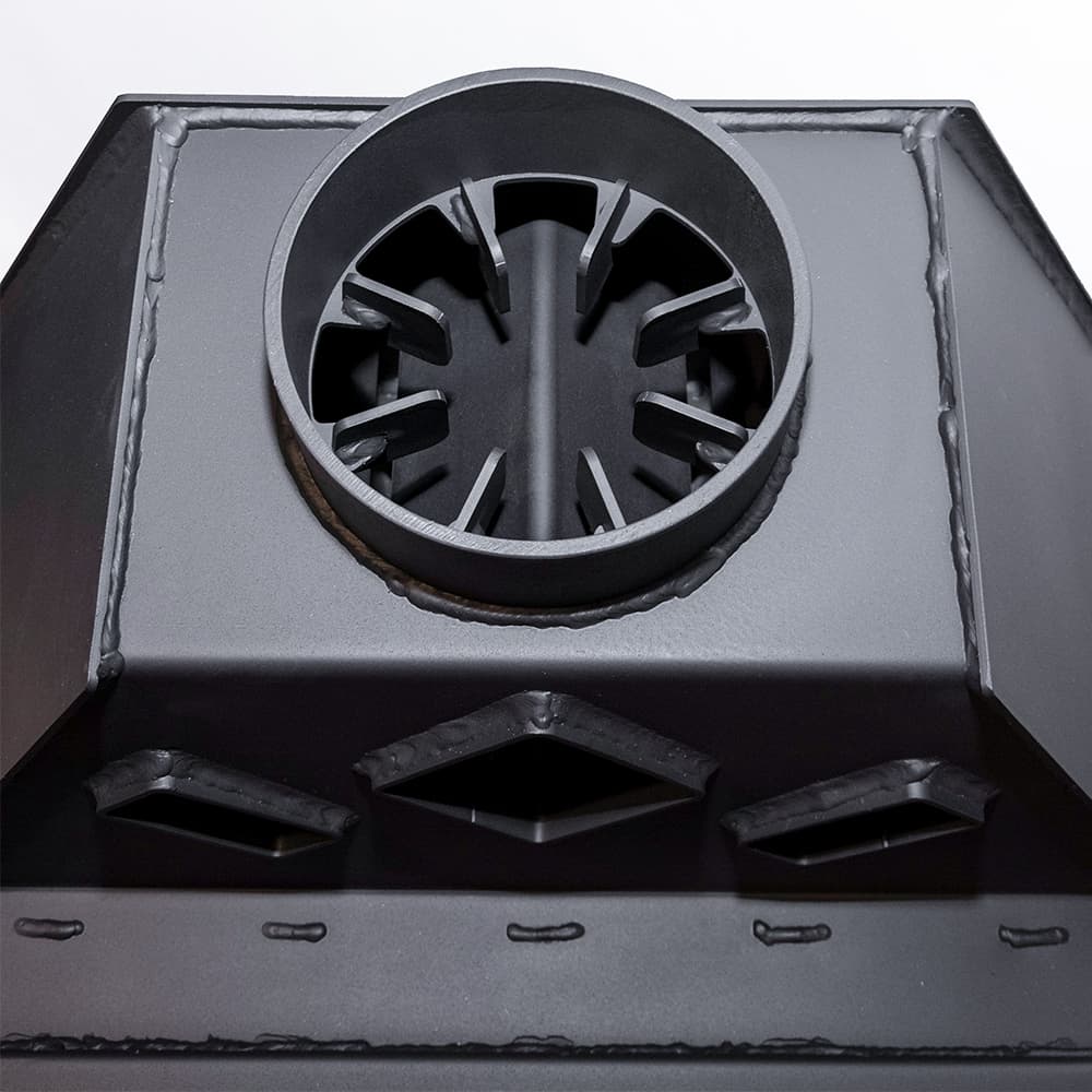 UNICO židinio ugniakurus galite užsisakyti su patentuota „Refrabox" keramika. Ši ugniai ir, svarbiausia, smūgiams atspari medžiaga pasižymi žymiai didesne šilumos kaupimo talpa nei įprastos šamotinės plokštės, todėl padidėja degimo kameroje sukauptos energijos kiekis.